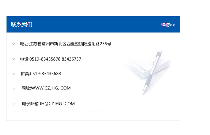 地址:常州市新北區友邦商務大廈1幢16、17層  電話:0519-85101652  傳真:0519-85112595  郵編:213022  網址:www.cz-jiayue_cn.ynhbjc.com  郵箱:xiajifengaa@163.com